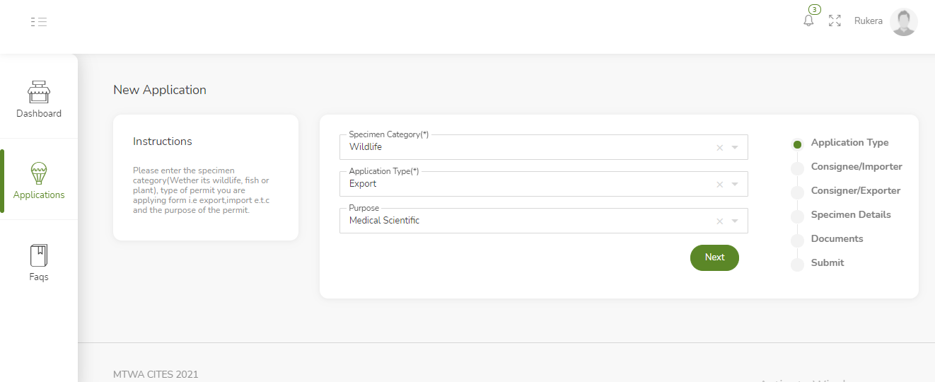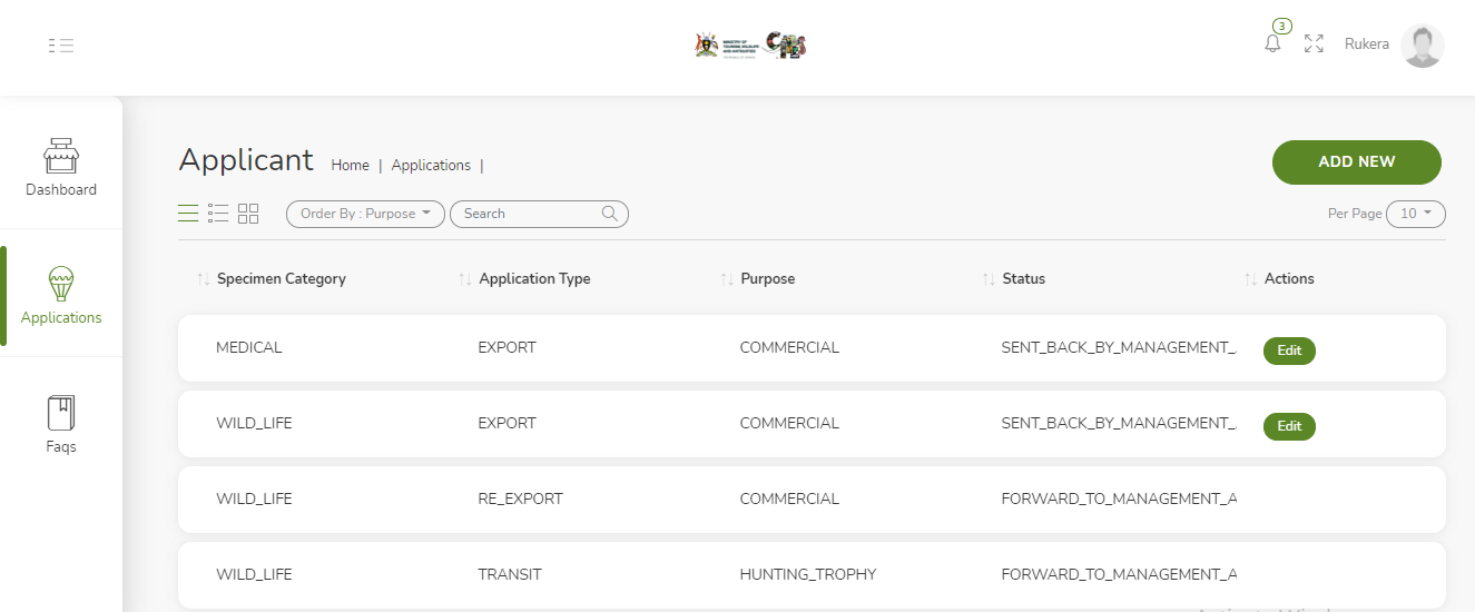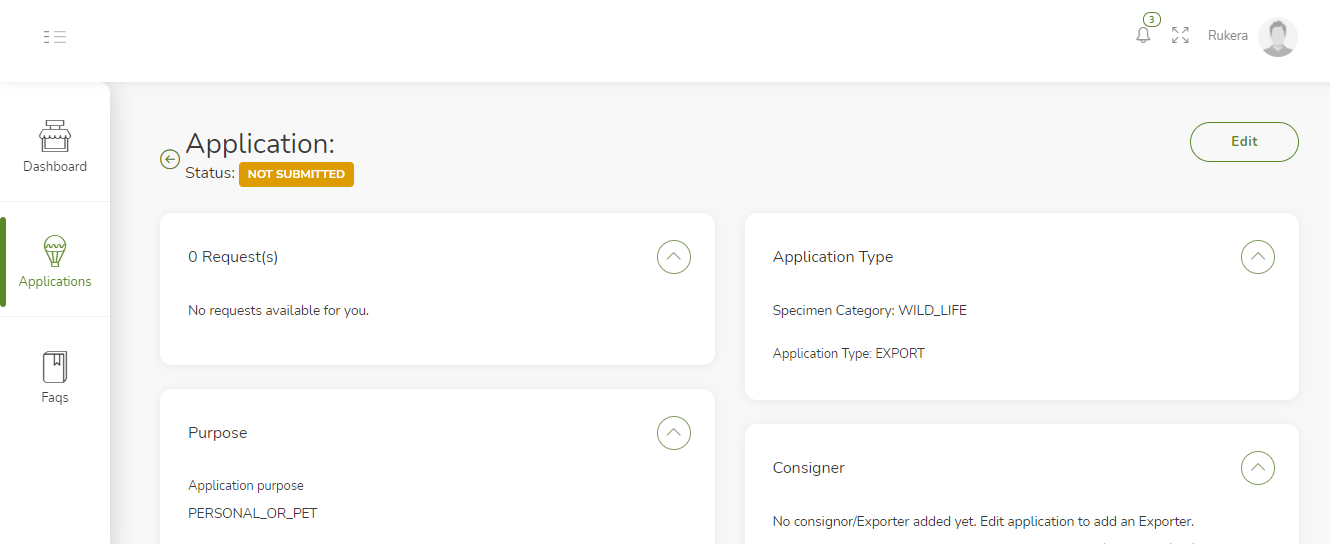 When an application has been submitted, you will not be able to edit it until a request from authority is sent to you, for every action that happens on the application you will receive an email notification and if an email is not received you can always login into the portal and check the notifications or click on the specimen category to view the details of the application.